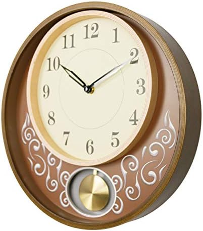 Amazon Com Bestime 13 Inch Vintage Wooden Wall Clock With Pendulum Look Grace Classic And Vintage Battery Operated Non Ticking Quartz Large Round For Living Room Office Home Decor Gift Home